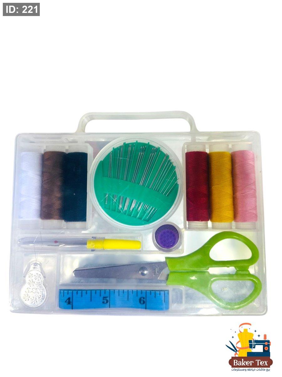 تحتوي على خيوط وابر يدويه،مقص،فراطه،خياطه،متر.